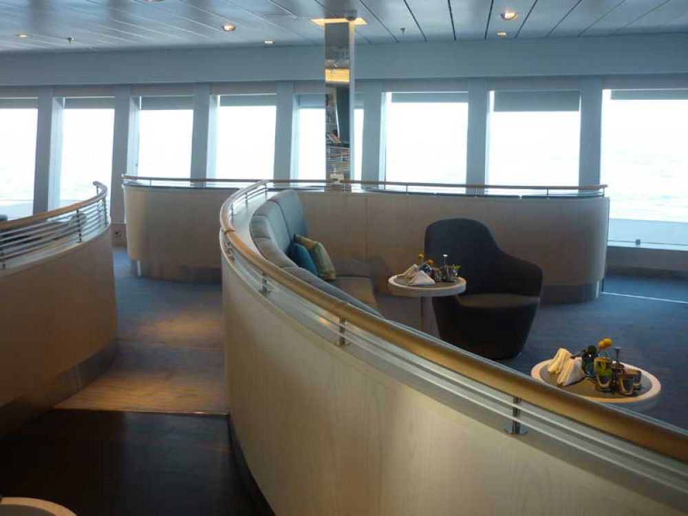 Insgesamt bietet das Schiff sehr viele offene Decksflächen. Nicht nur die gläsernen Balkone, auch der umlaufende Bug, das Observationdeck und die dazugehörige Lounge sind ideal für Naturbeobachtungen.