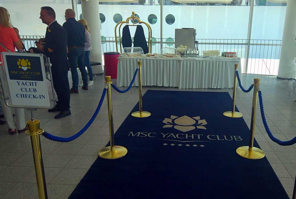 Sie treffen die Butler bereits am Terminal - bevor Sie überhaupt auf das Schiff gehen. Ein Butler kümmern sich dort um Ihr Gepäck, ein anderer begleiten Sie indessen zu dem separaten Check-in Bereich für die Gäste des Yacht Clubs.