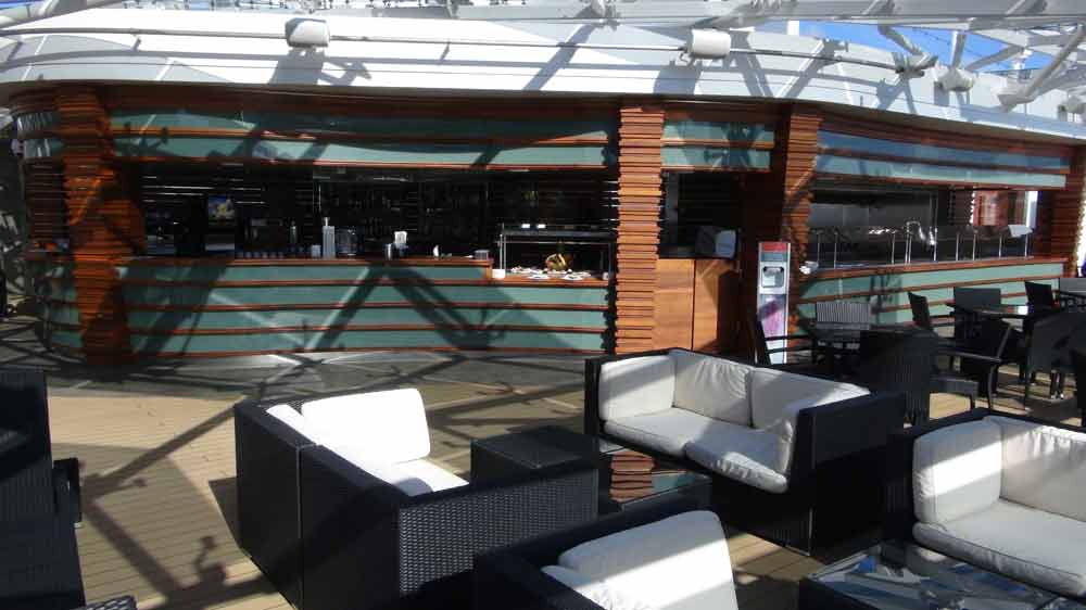 Fast 24 Stunden steht die "Top Sail Lounge" zu Ihrer Verfügung. Diese Panorama-Lounge liegt direkt über der Brücke und garantiert eine spektakuläre Aussicht. Dabei genießen Sie einen Cocktail und bedienen sich bei den feinen Delikatess-Häppchen bei Tag und Nacht und lassen sich von Live-Musik am Abend unterhalten. - Poolbereich „The One“ mit Sonnendeck und Bar