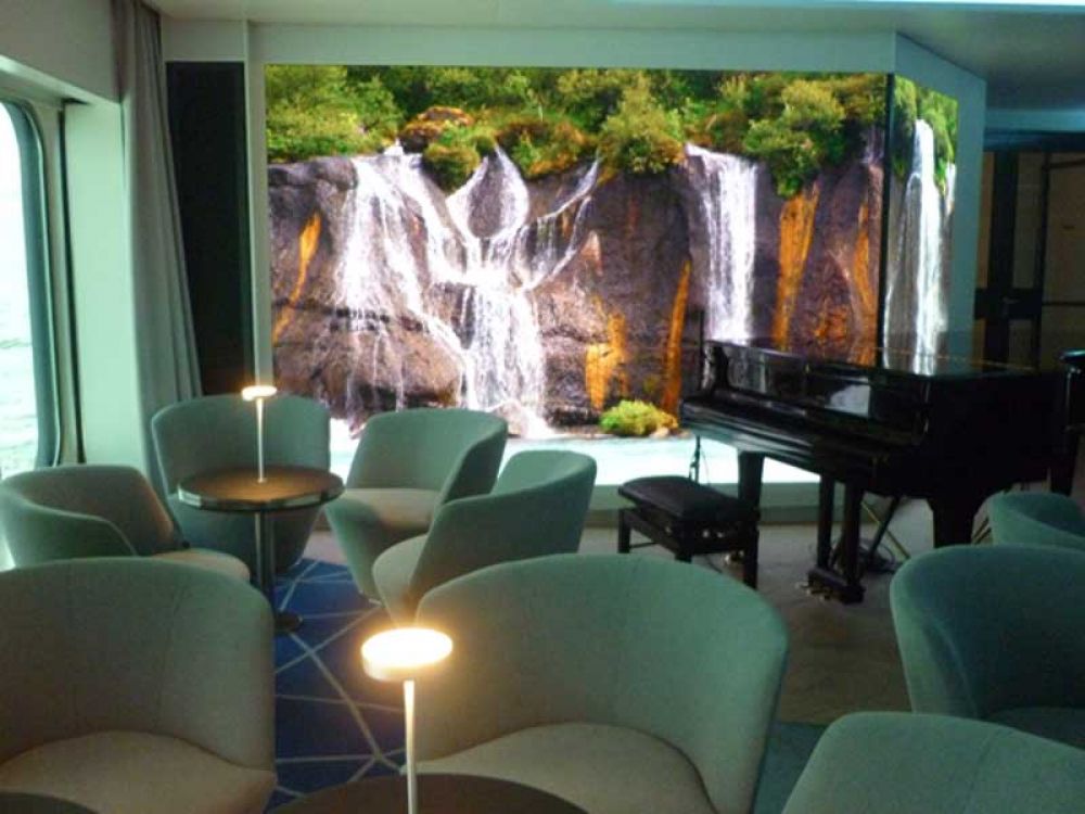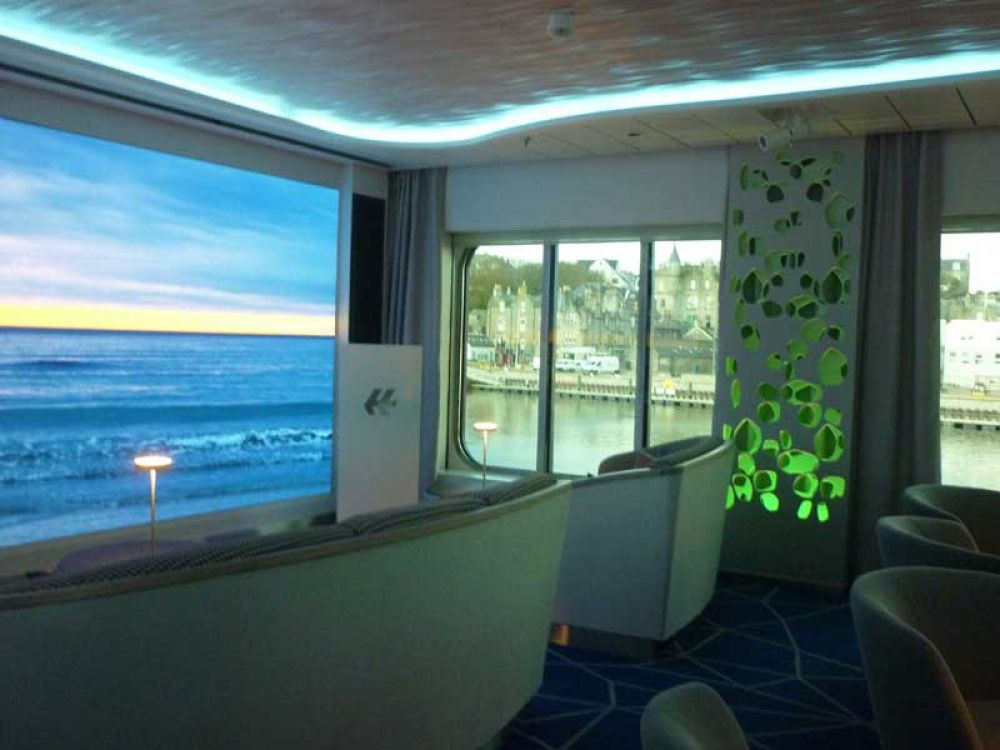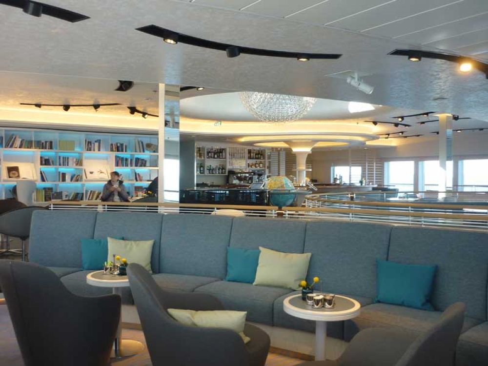 Insgesamt bietet das Schiff sehr viele offene Decksflächen. Nicht nur die gläsernen Balkone, auch der umlaufende Bug, das Observationdeck und die dazugehörige Lounge sind ideal für Naturbeobachtungen.