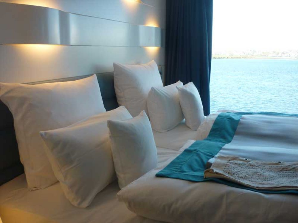 Die 120 Kabinen sind als Balkonkabine (27 m² inkl. 5 m² privatem Balkon), French Balcony Kabine (21/23 m²), Panoramakabine mit Panoramafenster (21 m²) oder als Suiten buchbar.