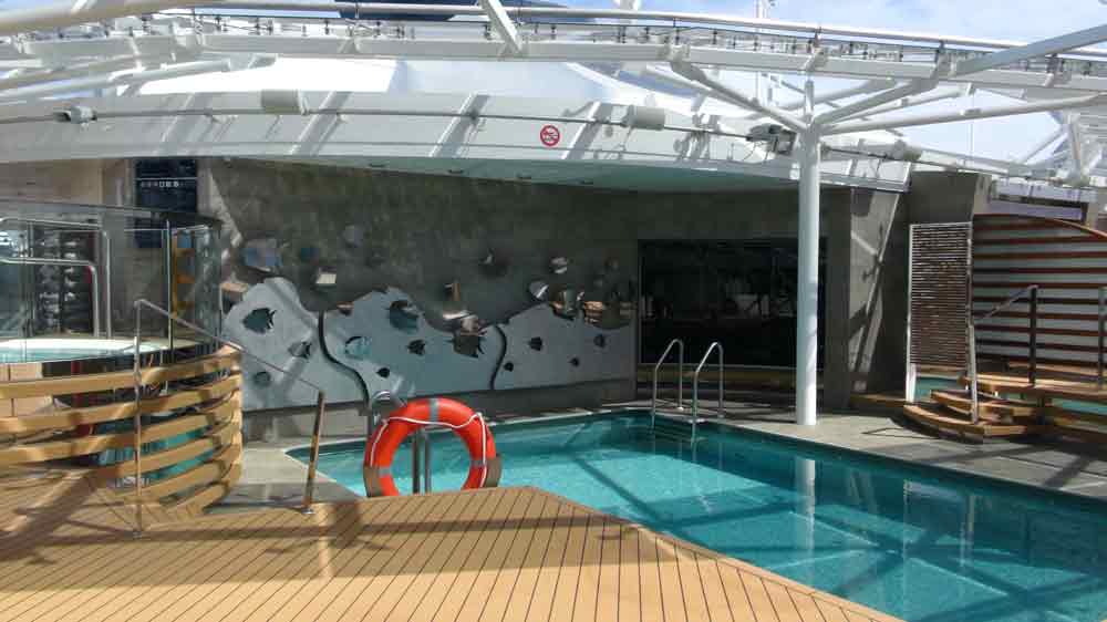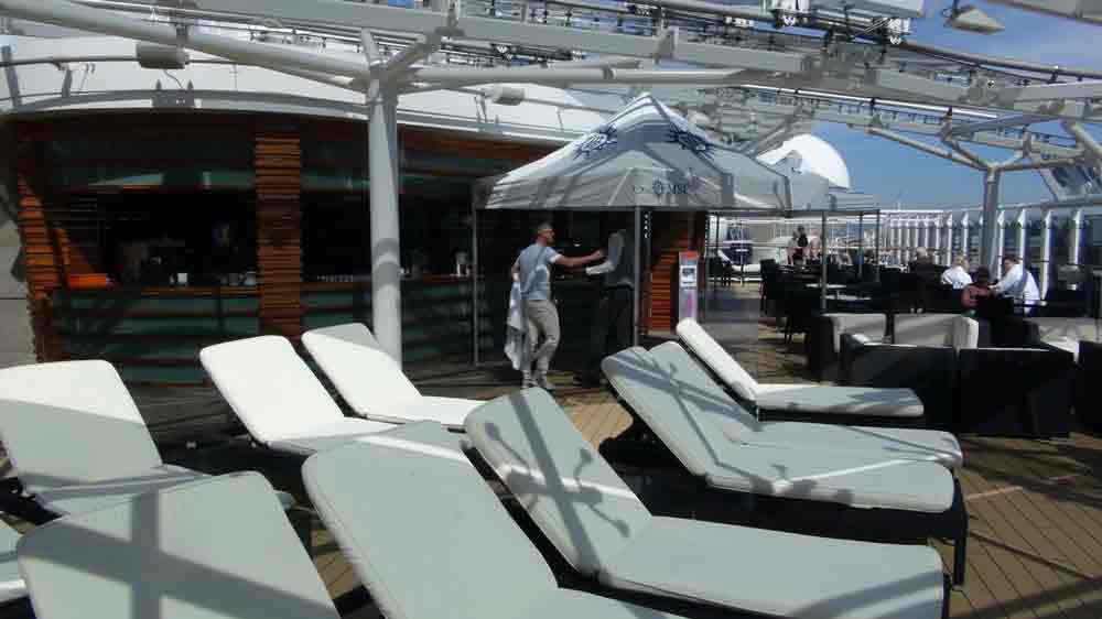 Fast 24 Stunden steht die "Top Sail Lounge" zu Ihrer Verfügung. Diese Panorama-Lounge liegt direkt über der Brücke und garantiert eine spektakuläre Aussicht. Dabei genießen Sie einen Cocktail und bedienen sich bei den feinen Delikatess-Häppchen bei Tag und Nacht und lassen sich von Live-Musik am Abend unterhalten. - Poolbereich „The One“ mit Sonnendeck und Bar
