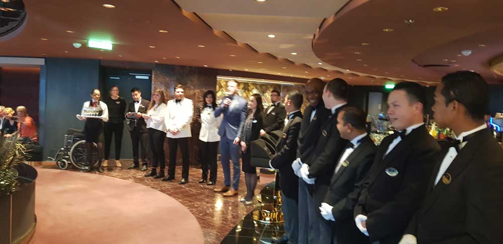Während der Reise versuchen die Butler wirklich Ihnen jeden Wunsch von den Augen abzulesen. Ob in der Lounge, in der immer Snacks bereit stehen, oder im Restaurant zum Frühstück, Mittag- oder Abendessen. Auf Wunsch werden Sie werden zu Veranstaltungen im Theater begleitet, wo Sie alle Wartenden umgehen und zu den reservierten Plätzen gebracht werden. Natürlich kümmern sich die Butler auch um die Schuhe und die Wäsche - genauso wie auf Wunsch ums aus- und einpacken der Koffer.