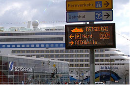 Zusätzlich unterstützt die Reisenden ein elektronisches Verkehrsleitsystem auf den Zufahrstraßen zum Ostseekai. Dies verbessert die Informationsqualität für die Anreise der Passagiere nochmals. Dirk Claus: „Der Ostseekai zählt zu den besten Terminalanlagen in ganz Nordeuropa. In enger Kooperation mit Agenturen, Behörden, Dienstleistern und den Reedereien bieten wir einen erstklassigen Service.“